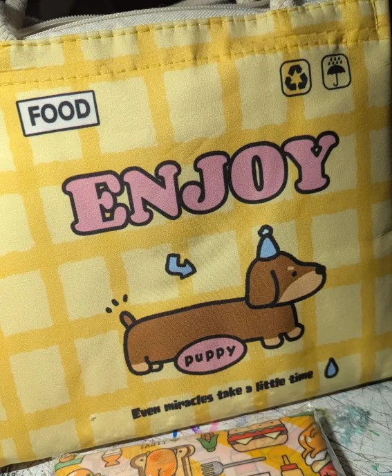 This cute lunch box bag is designed to keep your meals fresh and organized wherever you go. With aluminum foil lining and a spacious interior, it is perfect for school, office, picnics, or daily outings.